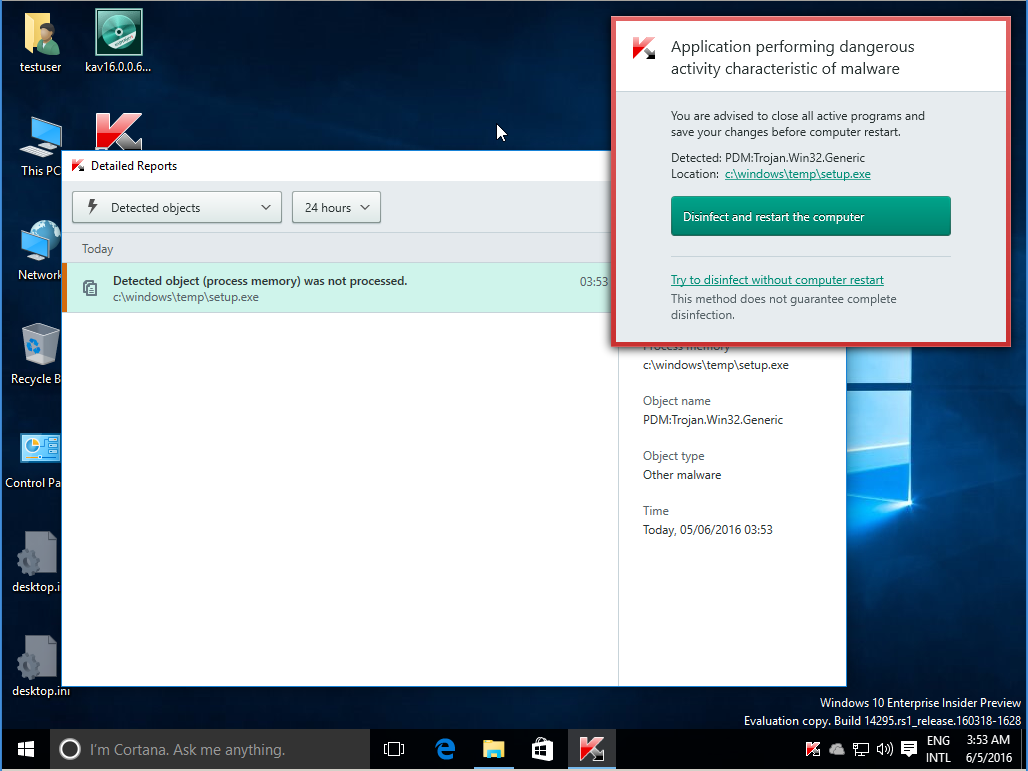 Kaspersky Anti Virus 20.0 was tested as follows: