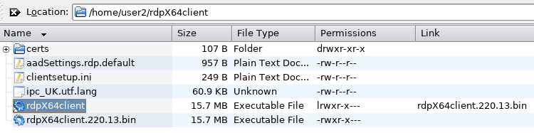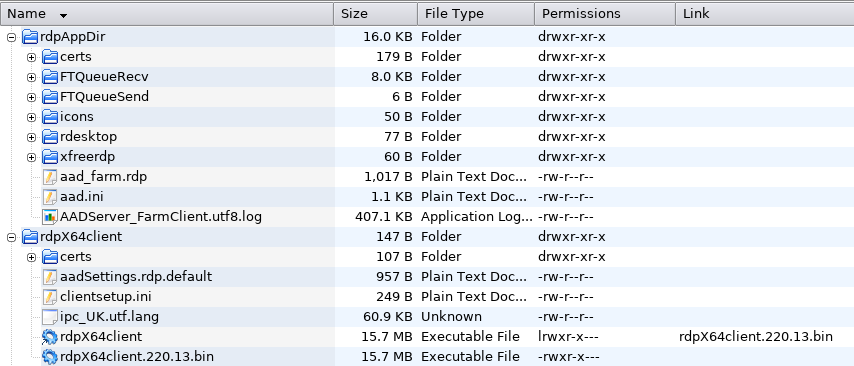 The application rdpXXXclient will create the folder rdpAppDir in the home-folder of the user, which will contain the: