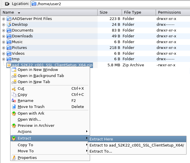 Copy the ZIP-File to the Home-folder of the Linux Client: