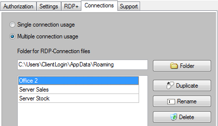The settings of each "Connection" are written in a RDP file. These RDP-connection-files are placed in the selected folder.