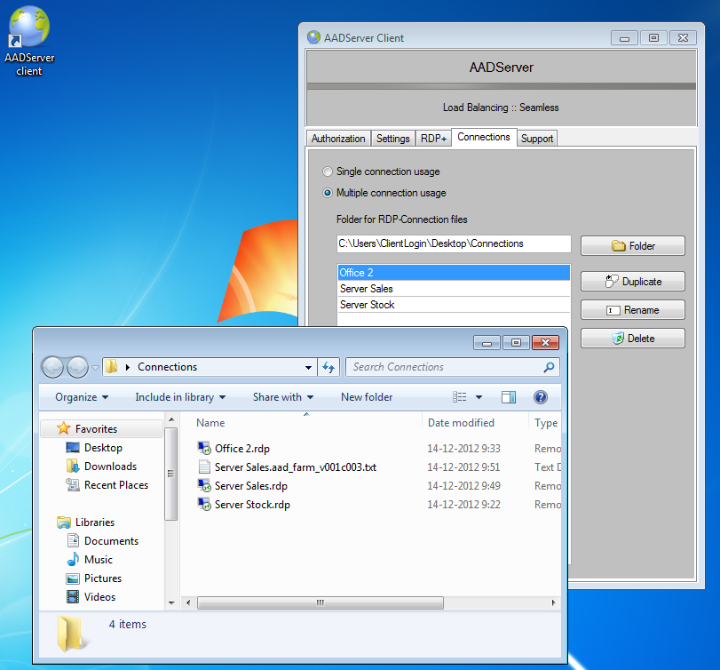 The AADS Client software is able to handle multiple connections to multiple AADS Terminal Servers: