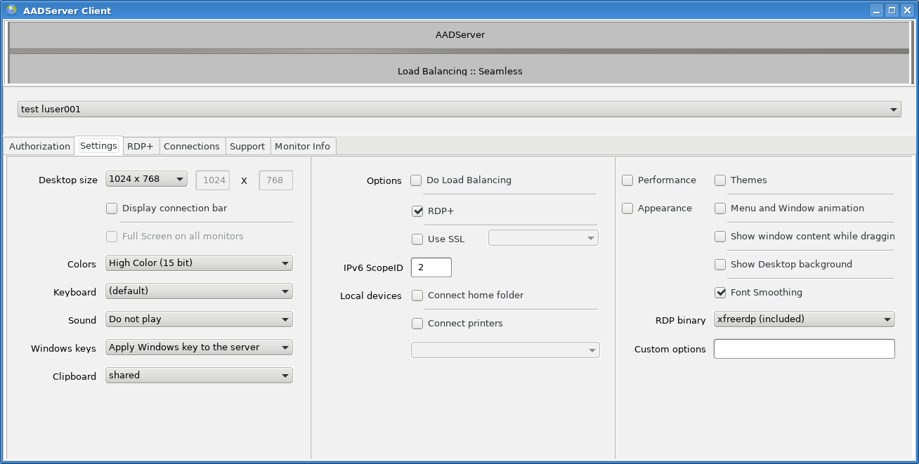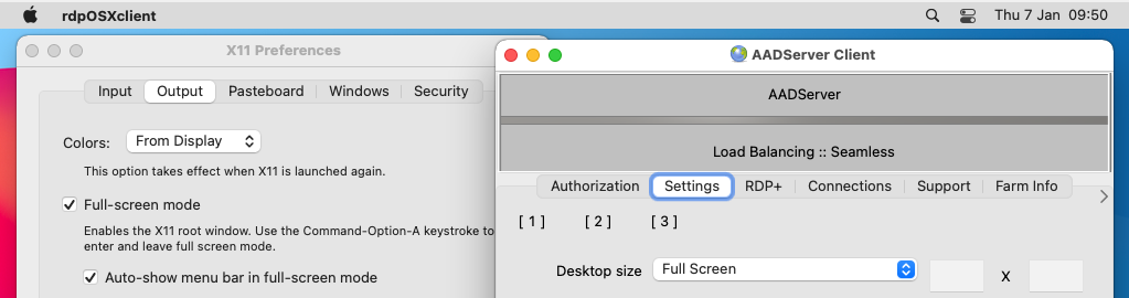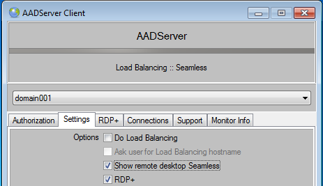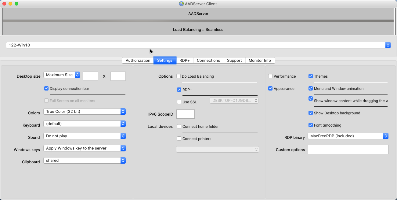 - The Remote Desktop is shown seamless (this requires the AADS Client software for Windows on the Client PC).
