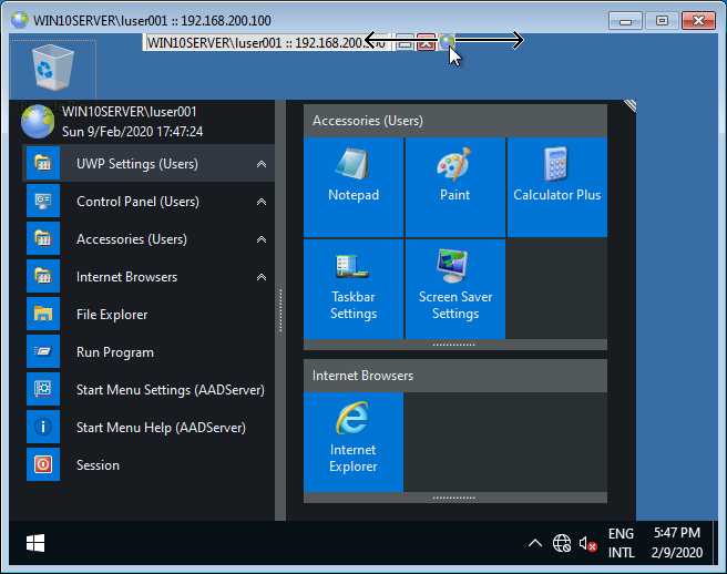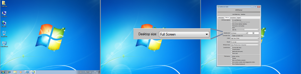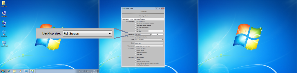 - First it is attempted by the AADS Client software to show the Remote Desktop as big as possible.