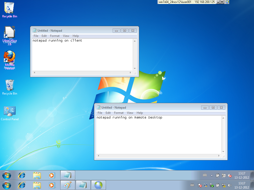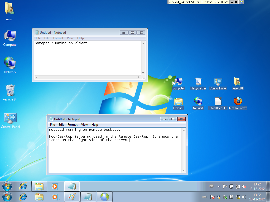The screendump in example 2 also shows "a problem". The desktop icons of the Remote Desktop are mixed up with the desktop icons of the client.