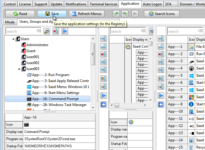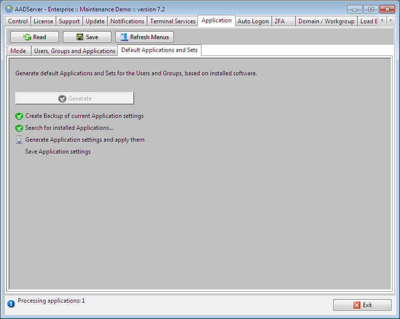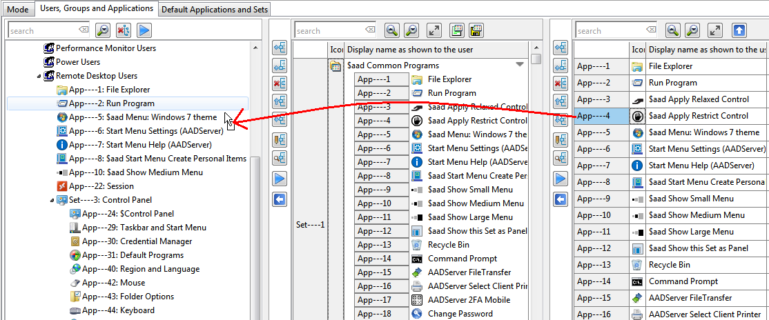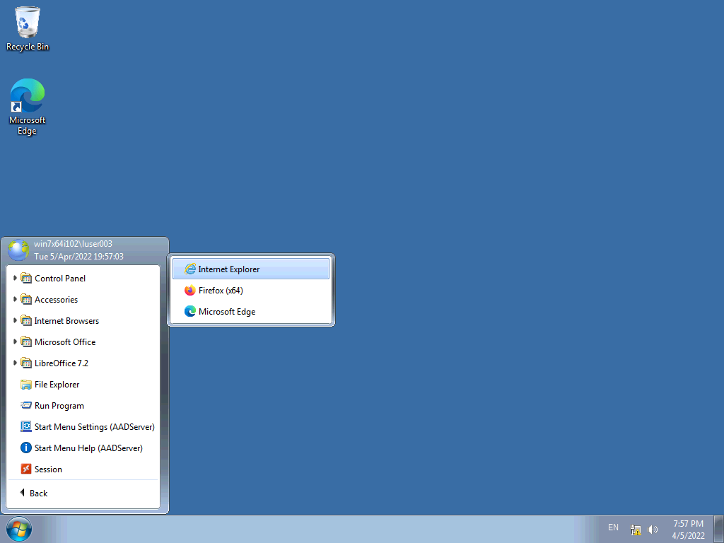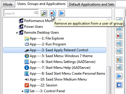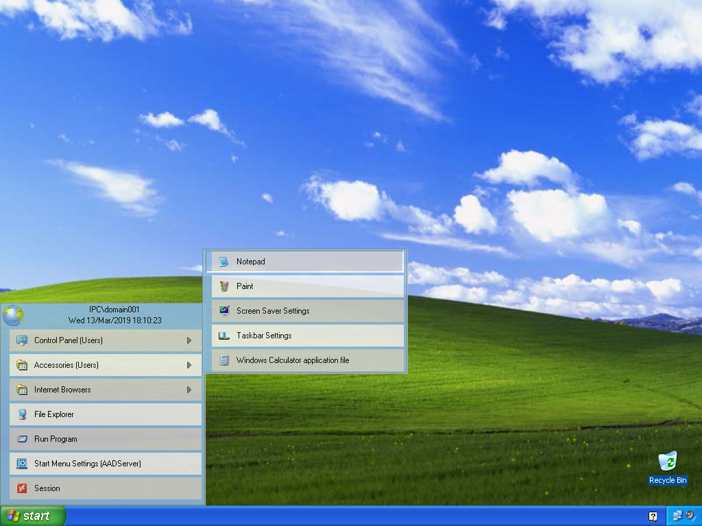 When "Default Applications and Sets" is used for disabling the default Windows Start Menu, all Users will be presented with an AADS Start Menu.
