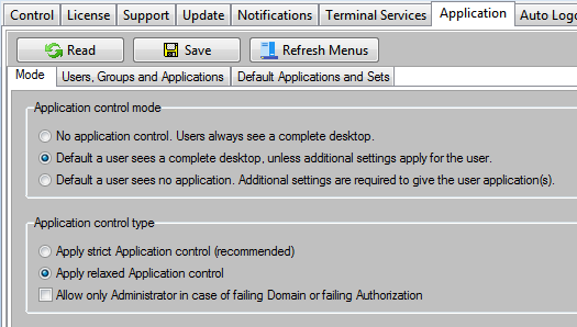 It is possible to change this settings, and apply Restrict Application Control to the users: