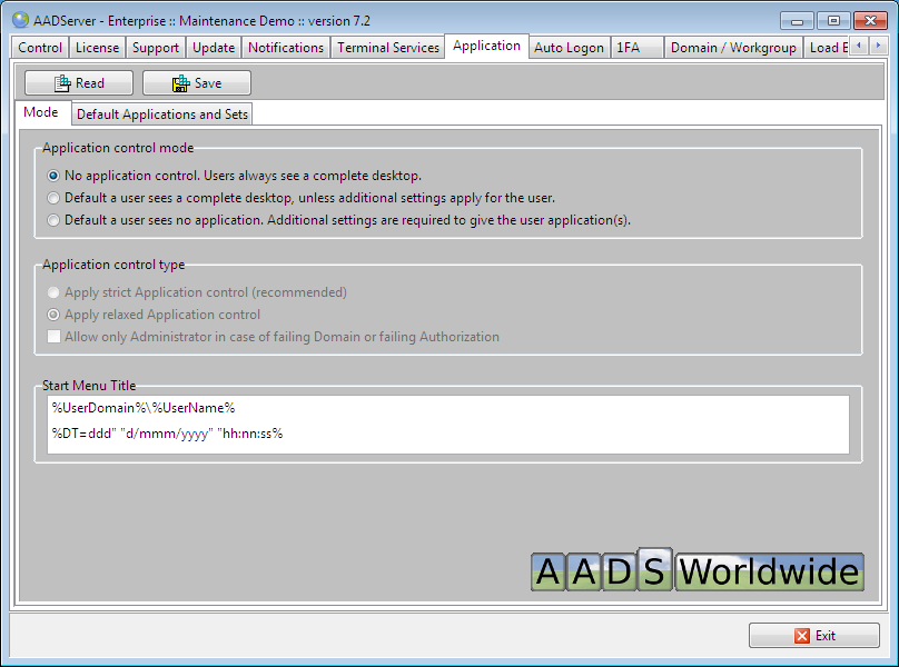 If you do not want to use AADS Application Control any more, and wants to go back to "Default Windows", select