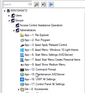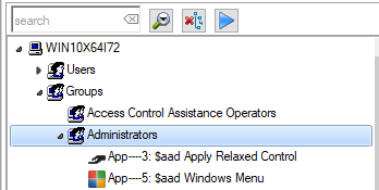 The group Administrators have "File Explorer" assigned, and the directive "$aad Apply Relaxed Control", implying that members of Administrators are not limited / restricted by AADS Application Control.