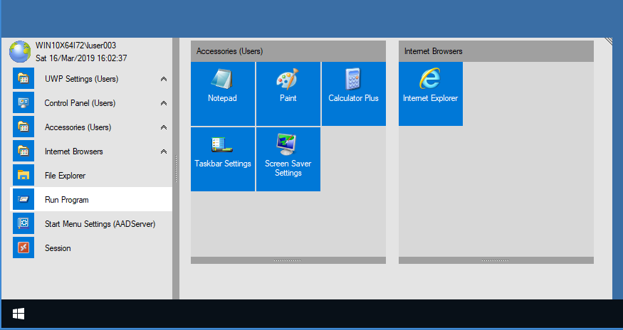 If "Run Program" is made available for the Users, the Start Menu will show it: