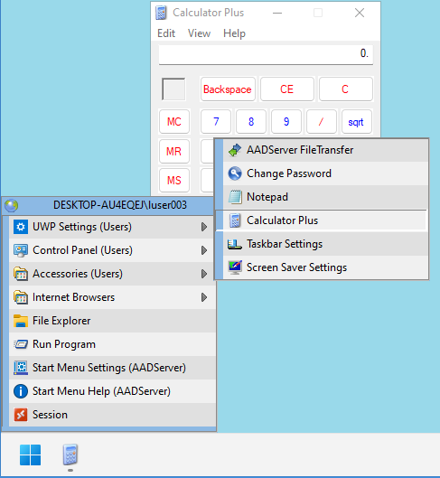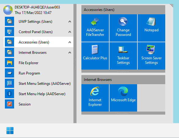 When the user does not have assigned Explorer, a small AADS Start Button is shown on the Desktop the User.