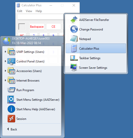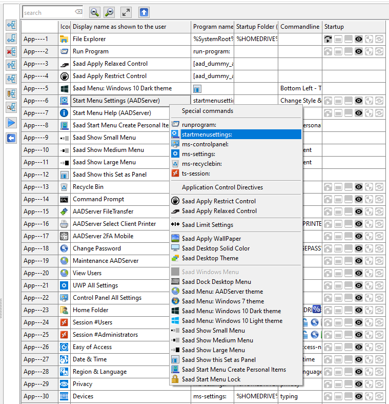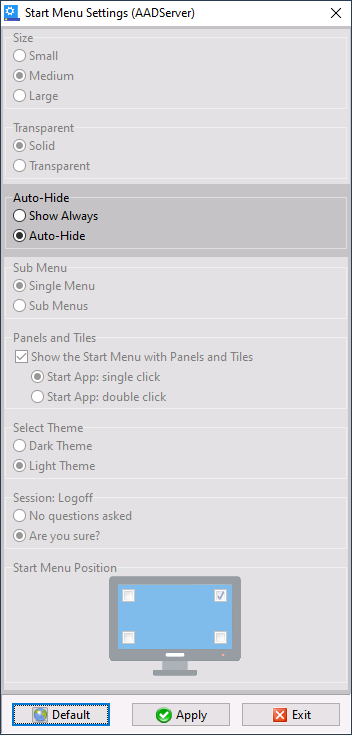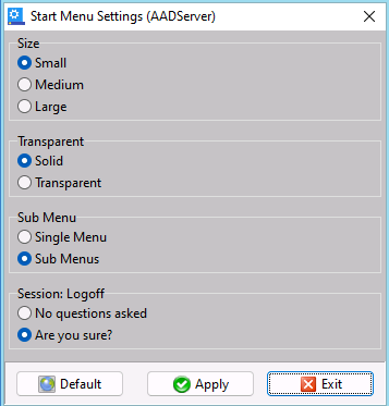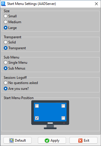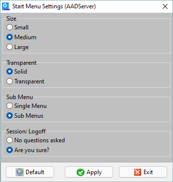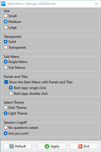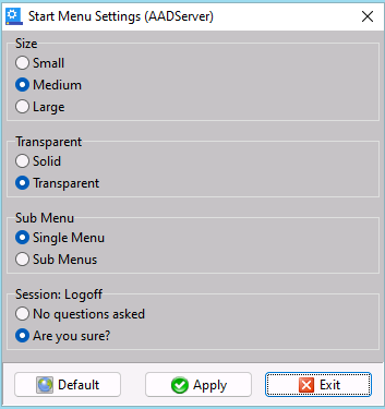 When "Start Menu Settings" is combined with the Look and Feel AADServer theme, the user has the following options for changing the Look and Feel :
