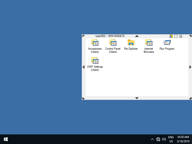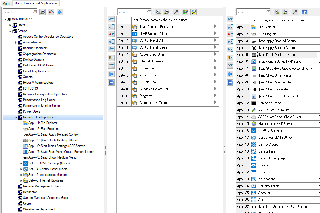 Optimize is used in this example to create a default set of Applications and Sets. After Optimize is done, 1 setting is changed: the Users will get the DockDesktop Menu: