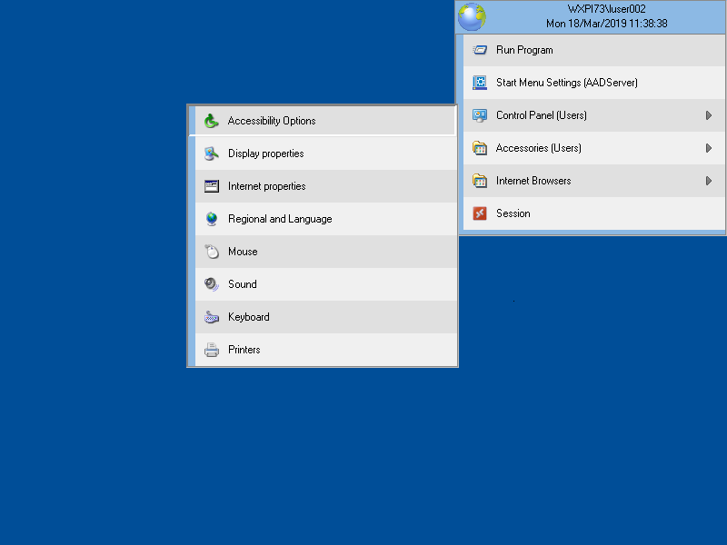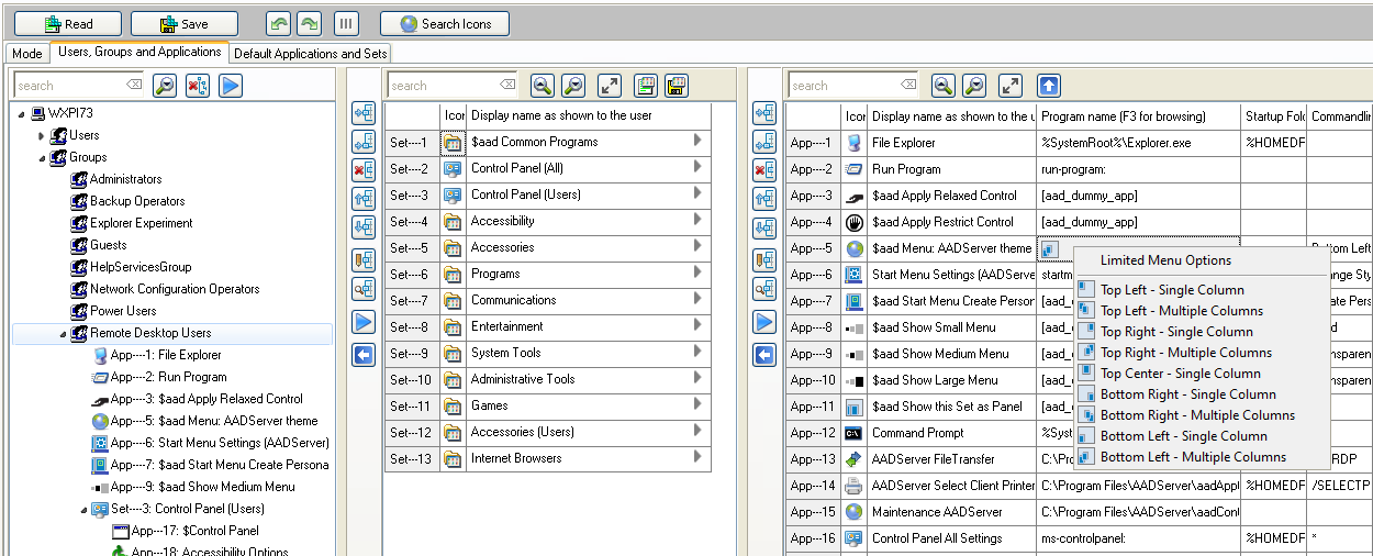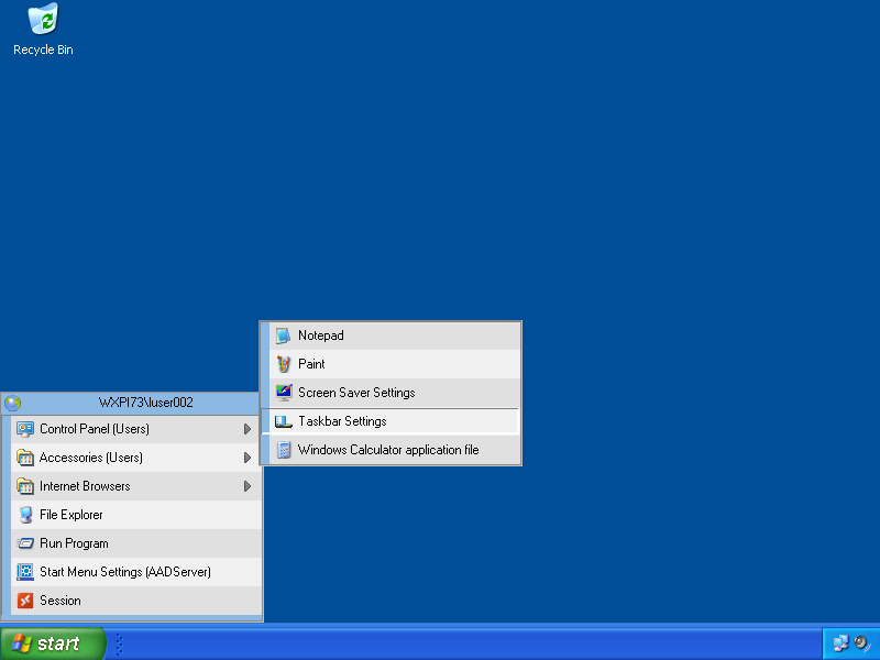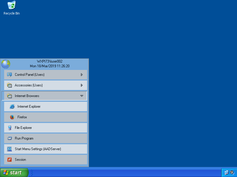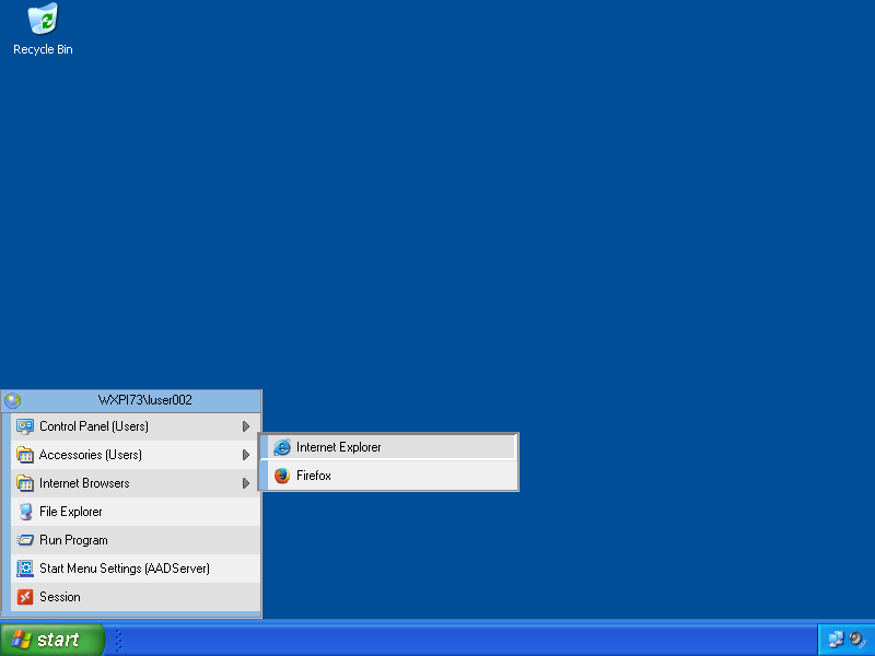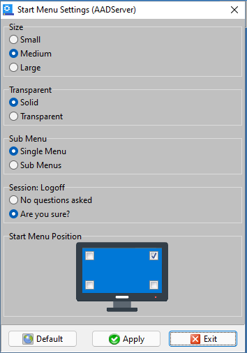 If the User has not Windows Explorer assigned, the position of the Start Menu is determined by AADS Application Control.