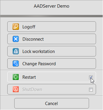 This Session menu will show as a Popup centered on the Desktop of the user:
