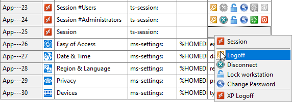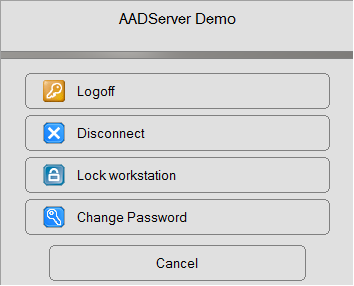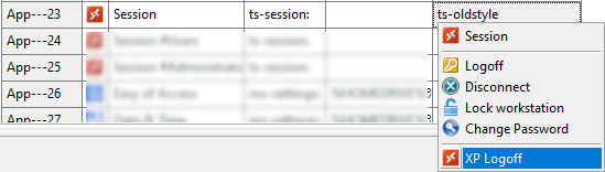 The option "XP Logoff" will shown an old style Session Menu with Logoff, Disconnect, etc, options to the User.