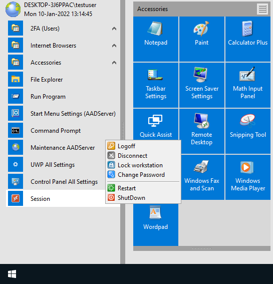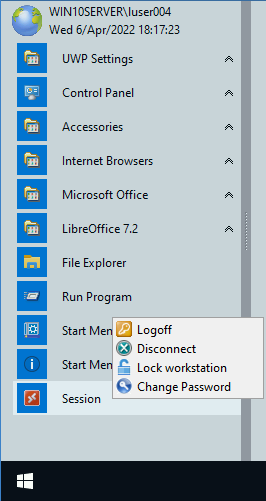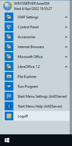 For example, the Administrator can give the Users only the Logoff Menu Item: