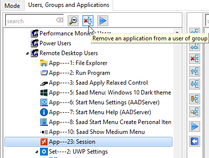 The Administrator can also assign the separate Session Menu Items to the Users.