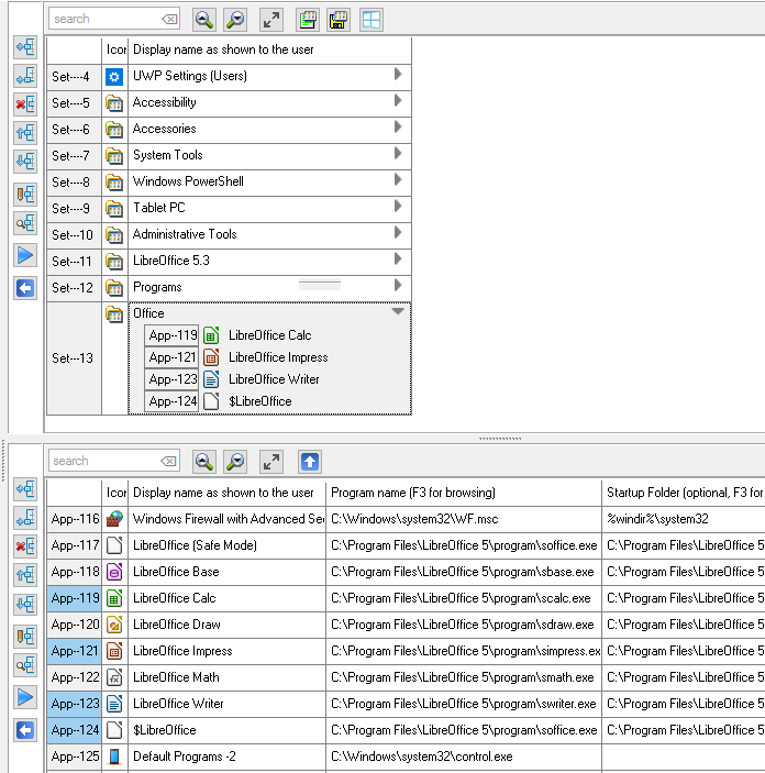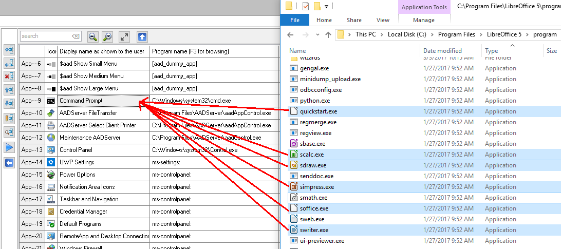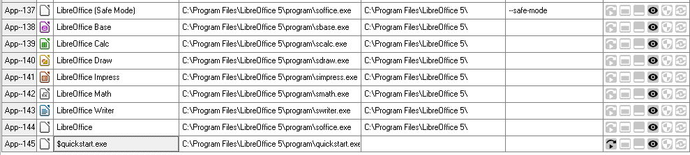Libre Office comes with a TrayIcon-quickstart utility. This Program does not have to appear in the Start Menu of the User, but the User might want to be able to run it and use it. This is where "Hidden" can be used. By defining and assigning a "Hidden" program to an User, the "Hidden" program will not appear in the Start Menu of the User. But the "Hidden" program can be started and used by the User.