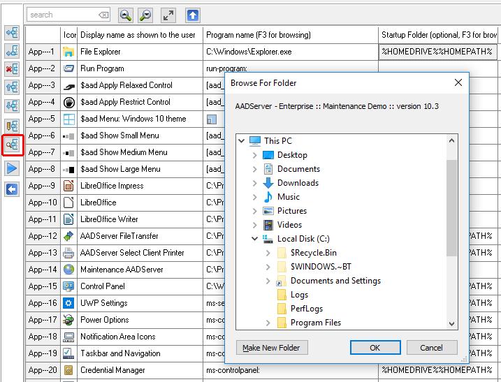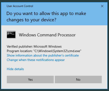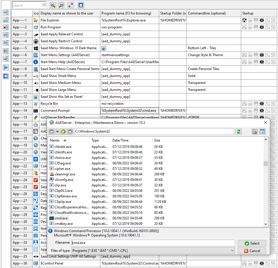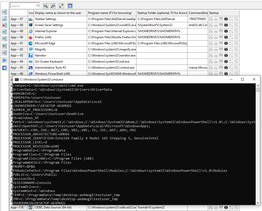In the example below, the Administrator has created an 2th CMD-App that is marked for Elevation: