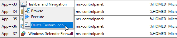Deleting the Icon implies that the custom Icon will not be used anymore, and that the default Icon of the application will be shown and used in the Start Menu of the user.