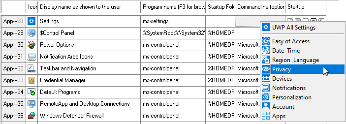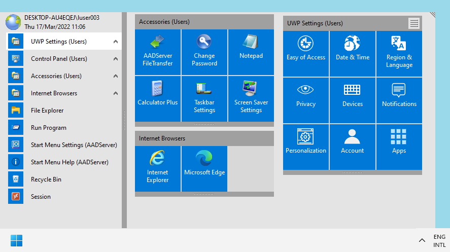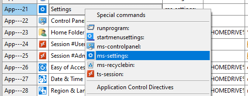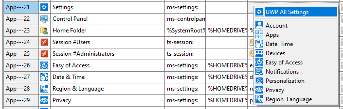 If the user is using the Look and Feel Windows 10, and if the option Panels / Tiles is being used, the user has the Set "UWP Settings (User)" as a Panel, containing the UWP settings as Tiles.