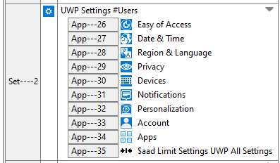 When Optimize is used, pre-defined "UWP Settings Items" for Users, and a Set containing those "UWP settings", will be created: