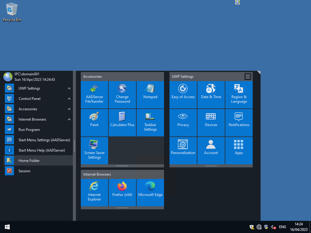 It is also possible to use a Taskbar Settings tool that is available when installing AADServer: