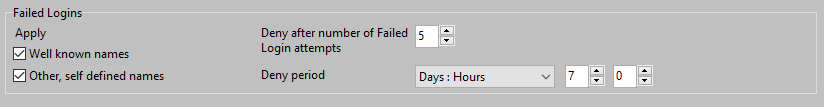 There are however circumstances where it is not really required to block Client PCs which do multiple failed logon attempts with specific company usernames / userIDs. For example, Point Of Sales systems that do automatically login on the AADServer, with a specific username like "POSClient123" (example of an username), and a password that nobody knows. Login is done automatically when booting the POS Client PC. And in the event that the remote POS Client PC makes an error, for example because the barcode reader is disconnected, it might not be needed to block the remote POS Client PC in the Firewall, but just fix the error. In such a case the IT Administrator of the AADServer can choose to handle only failed login / hack attempts when it is done with a well known user names like Administrator, but do not block a Client in the Firewall in case the failed login attempt is done with other, self defined user names.