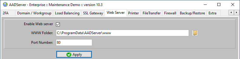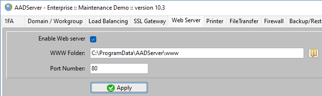 Example: if the port number of the SSL Gateway is changed, AADServer will also update the Windows Firewall rule for the SSL Gateway.