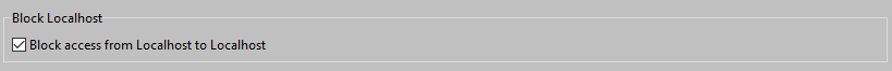The objective of "Block access from Localhost to Localhost" is to block viruses and / or RAT (remote access tools) on an infected PC / Server.