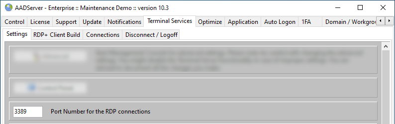 You can change the default port number which is used by the AADS Terminal Server for listening for Remote Desktop Sessions.