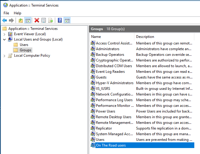 Example: the Administrator has created a group called "On The Road" users: