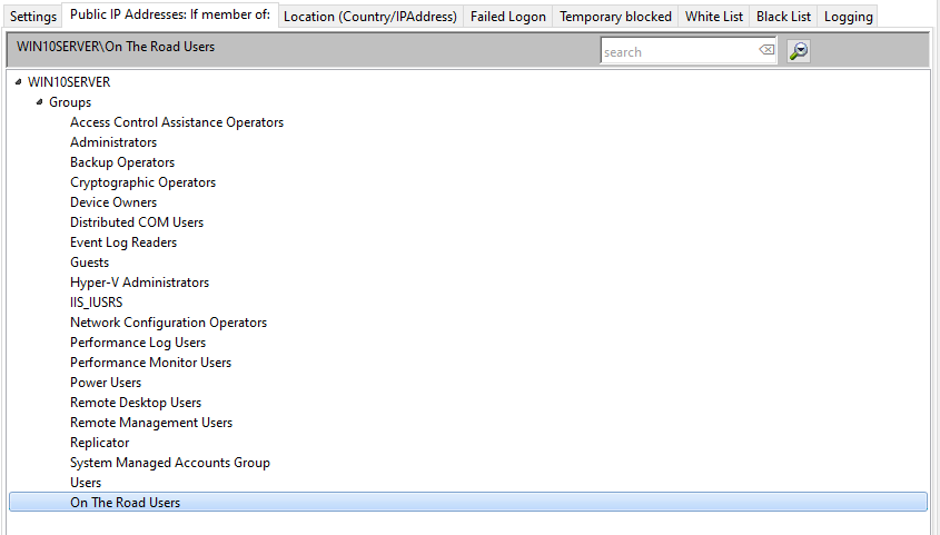 Access from Public IP Addresses is only allowed for users who are member of the group "On The Road users".