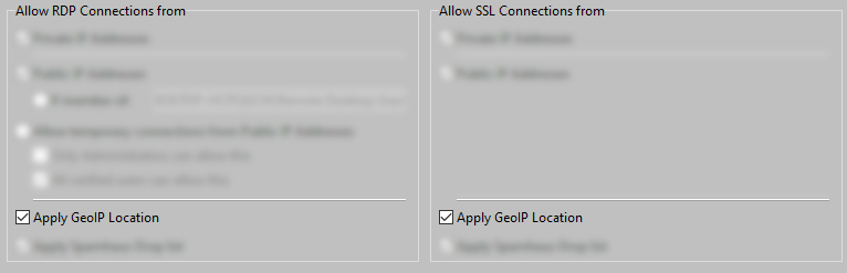 GeoIP Location should be used with RDP connections. For SSL connections is GeoIP is less relevant because the SSL Gateway does only allow connections from known Client PCs.