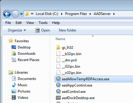 The Application folder of an AADS Terminal Server contains the following program: