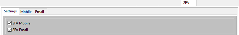 MFA (multi factor authentication) can be enabled by enabling either or both 2FA Mobile or 2FA Email: