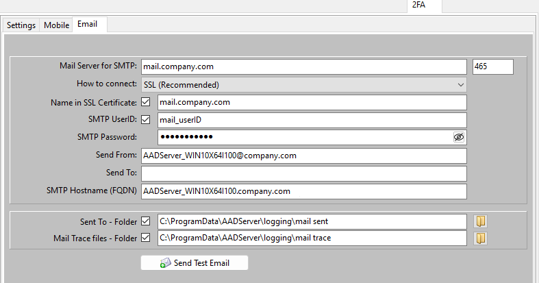 The email address of an User. This user can receive a Test-email after clicking on Send Test Email.