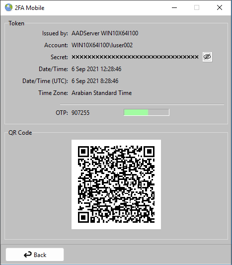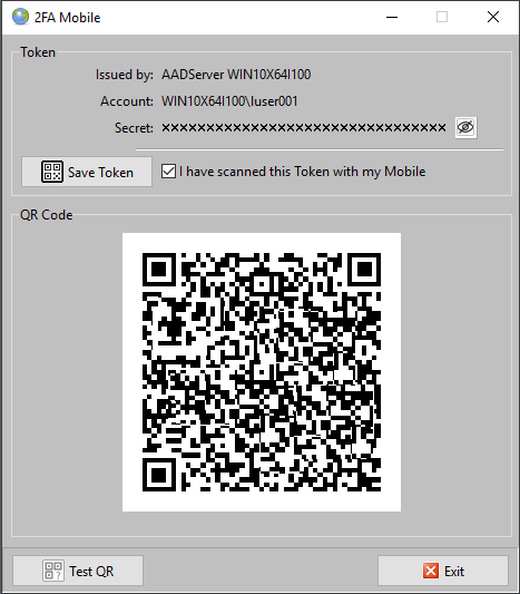 The first time an User does connect to the AADServer, the 2FA Mobile Token is generated. This is shown to the User: