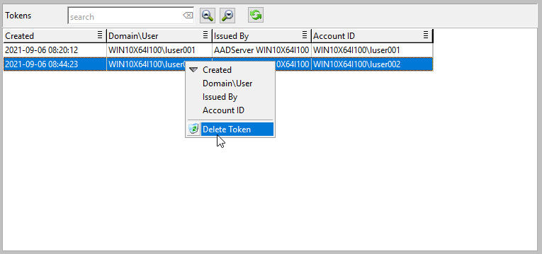 The Tokens as generated are shown. In case this Server is used in an AADS Farm, the Tokens of the other Servers in the Farm are also shown: