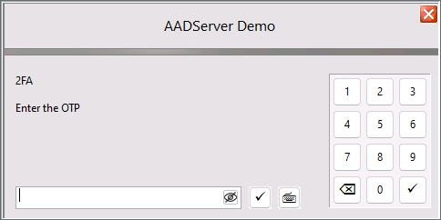 The next time the User does a connect to the AADServer, the user is presented with a Dialog where he/she needs to enter the OTP code as it is generated by the OTP App on his/her Mobile Device: