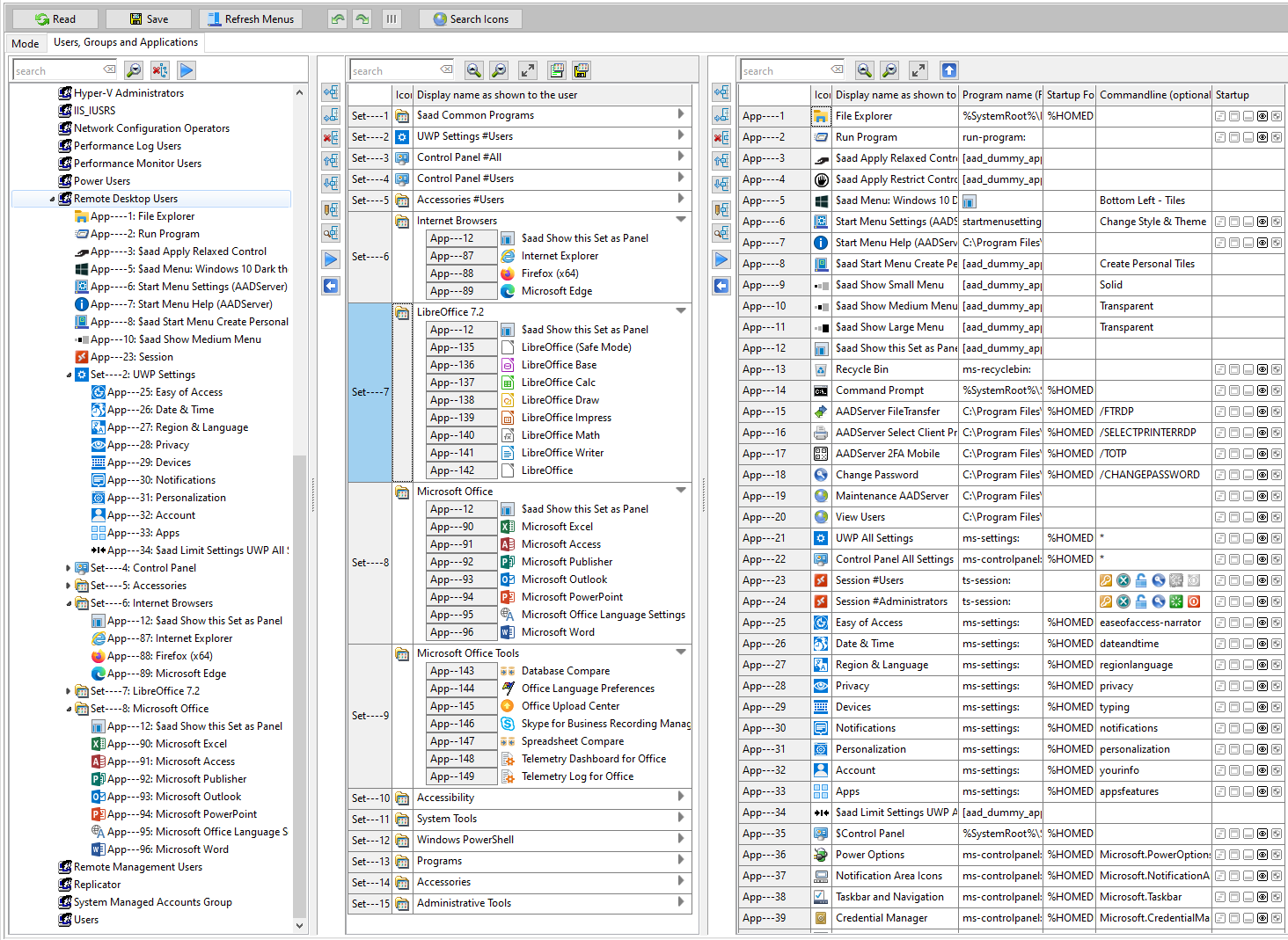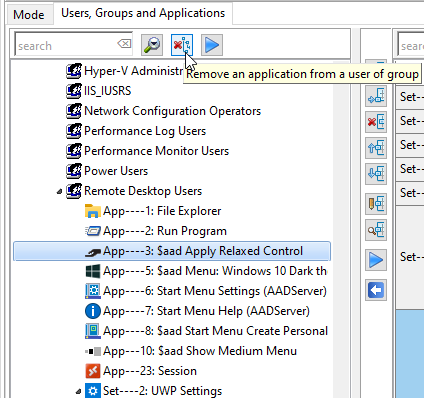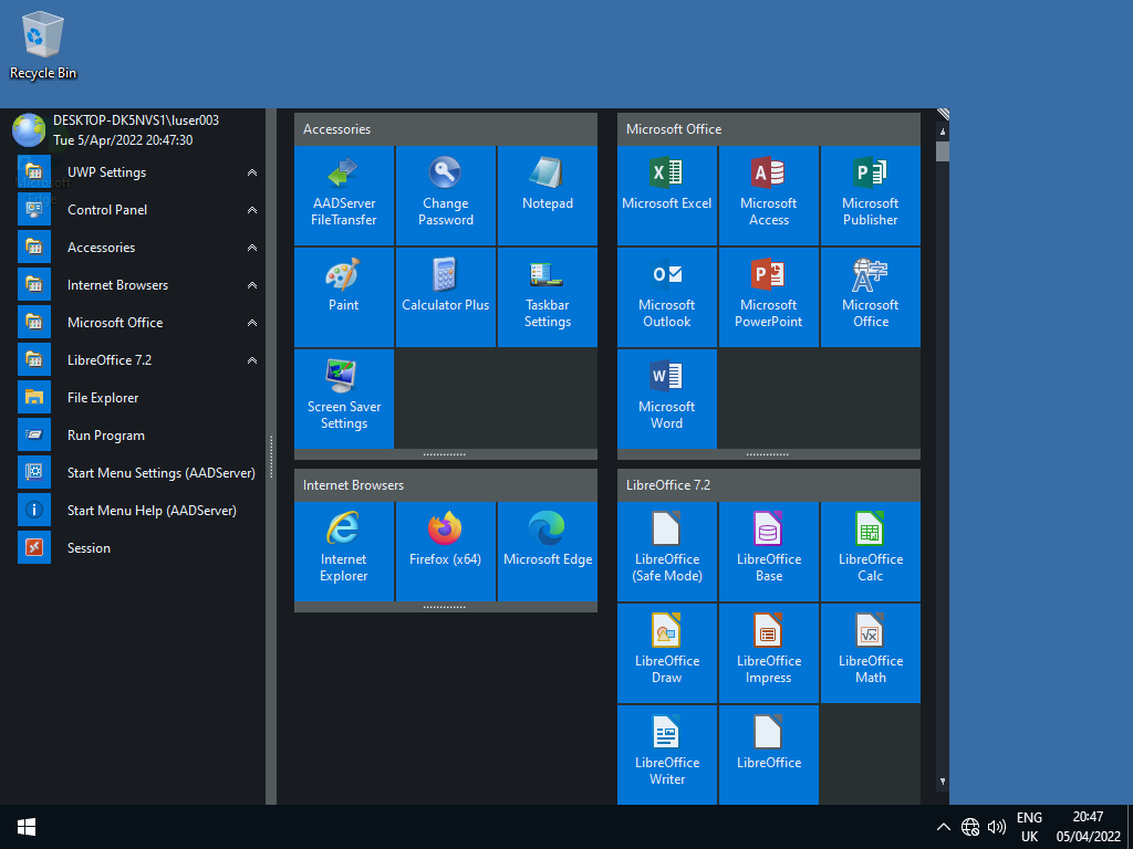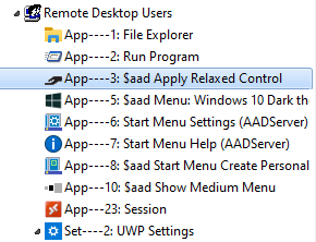 Should it happen that an user does not have any assigned Applications thru Application Control settings, the user gets a small default AADS Start Menu: