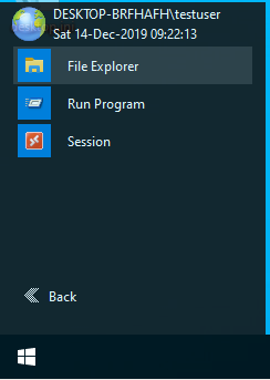 This small default AADS Start Menu is shown in cases when "settings" are such that there is no Start Menu at all for the User.