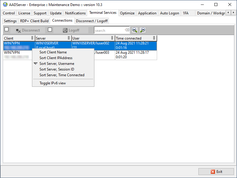 Note: when Load Balancing is used, use Show Users for disconnecting users.