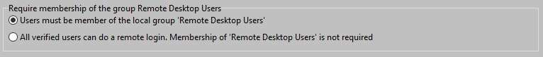 Default only users who are member of the group Remote Desktop Users can login. You can remove this requirement by selecting "verified users". A verified user is an user who has a valid username and password defined locally in Windows, or in the Domain.