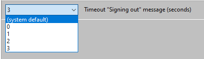 In case the short timeout for the "Signing out" message does result in problems, choose (system default) and wait for the Session Logoff to finish as long as it is needed...while the Client PC / MAC shows the message "Signing out" or shows a black screen...
