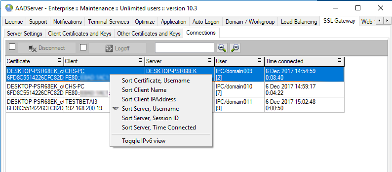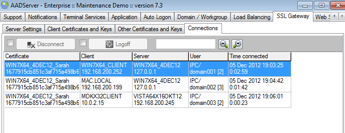 Note: when Load Balancing is used, use Show Users for disconnecting users.
