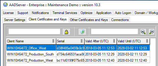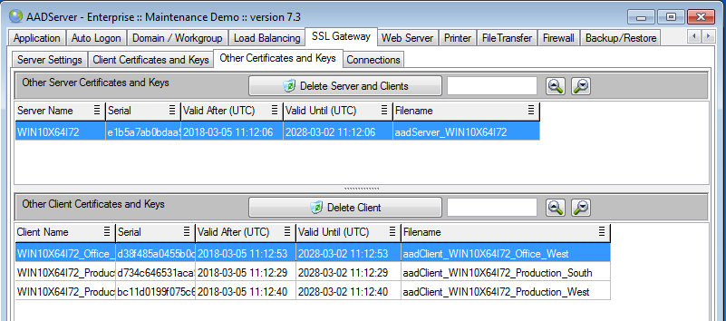 When the Administrator makes new AADS Client Builds for Windows, OSX or Linux , those new Client Builds will contain all Server Certificates. In this example that would be the Windows 7 and Windows 10 Server.