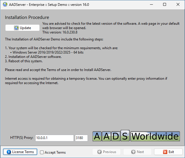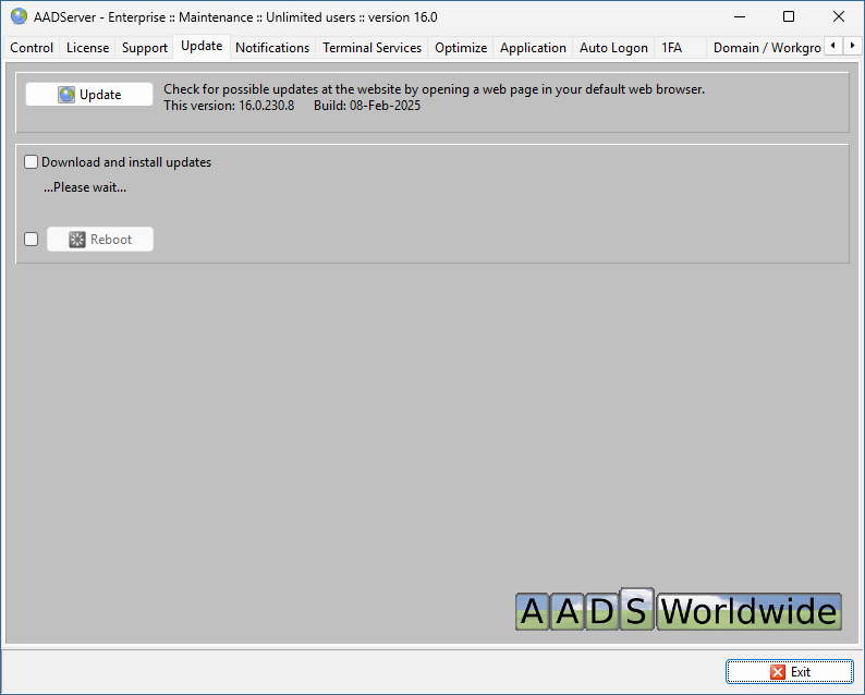- AADS Enterprise Terminal Server - Windows Server 2016, 2019, 2022, 2025, Server Essentials - 64 bits - no user limit - v16.0