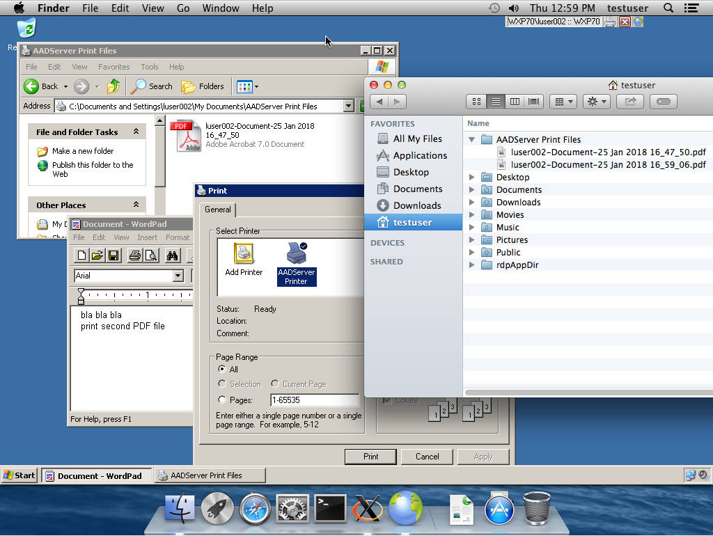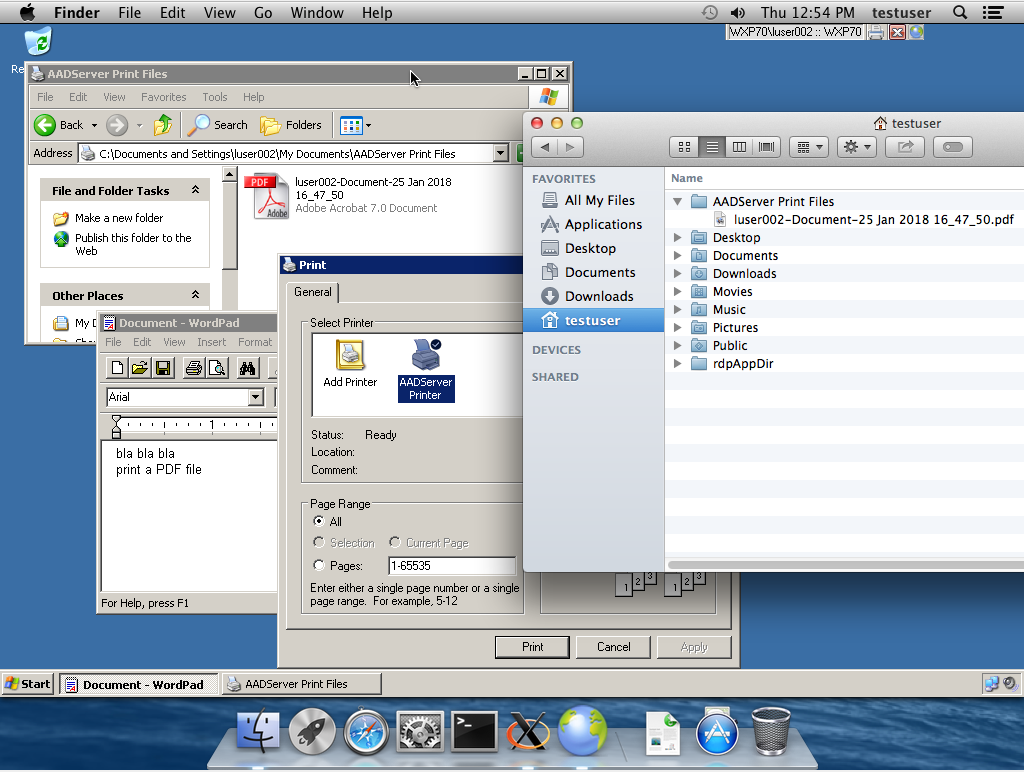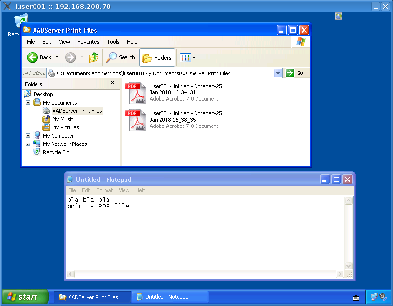 In the Remote Desktop Session, the User does prints a document on the AADServer Printer.
