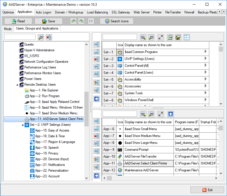 The Administrator has assigned "AADServer Select Client Printer" to the group "Remote Desktop Users".